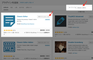 classic editorプラグインの検索とインストール